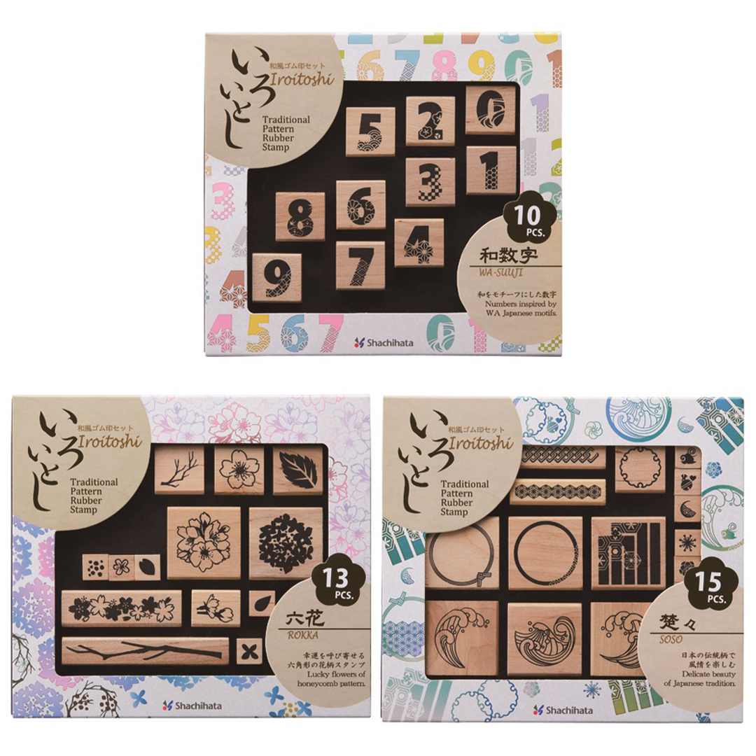 "Iroitoshi" is a series of stamp sets featuring Japanese patterns. Each set includes a collection of wooden stamps with rubber designs inspired by Japanese heritage and culture. The stamps are perfect for scrapbooking, journaling, or other creative projects.