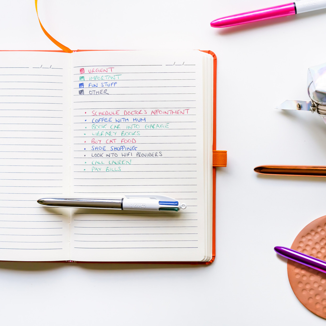 Refillable ballpoint pen with medium-sized tip- and click mechanism. Several colors in one pencil: black, blue, red and green. Writing length: 8,000 m. Wide round pen body.