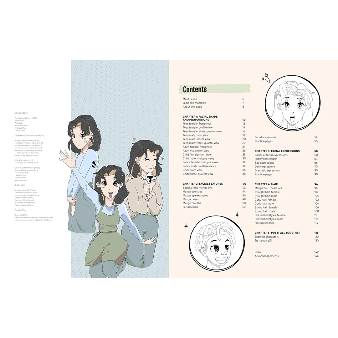 A blank page can often be daunting for a new artist. This book builds the fundamentals of the manga face across each chapter, with step-by-step visual tutorials, accompanied by tailored practice pages. This helps the reader take their first steps, providing the space and support to start without any of the stress that comes with how to fill a blank page.