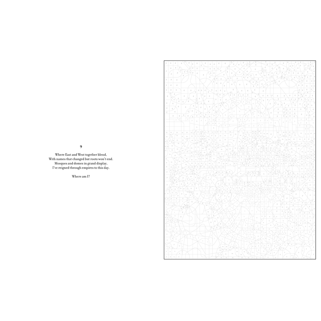 - To add to the fun, each illustration comes with a riddle that you can ponder as you bring the artwork to life. Uncover the answers in words and pictures at the end of the book.