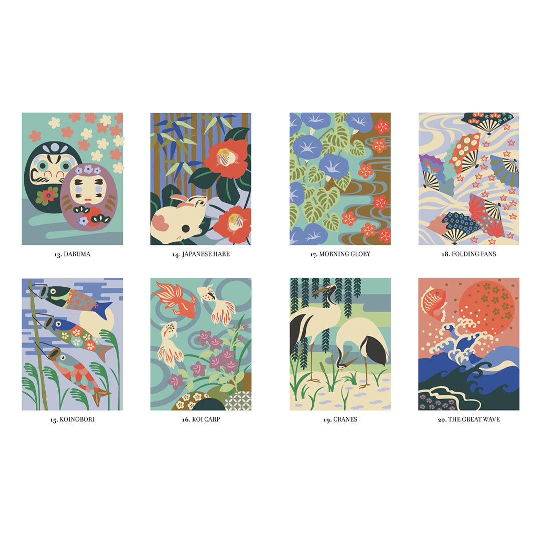 - Each of the 30 fresh and modern illustrations features a colorful Japanese themed page that is revealed as you complete the color-by-numbers design.