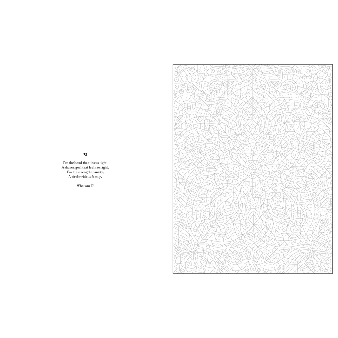 - To add to the fun, each illustration comes with a riddle that you can ponder as you bring the artwork to life. Uncover the answers in words and pictures at the end of the book.