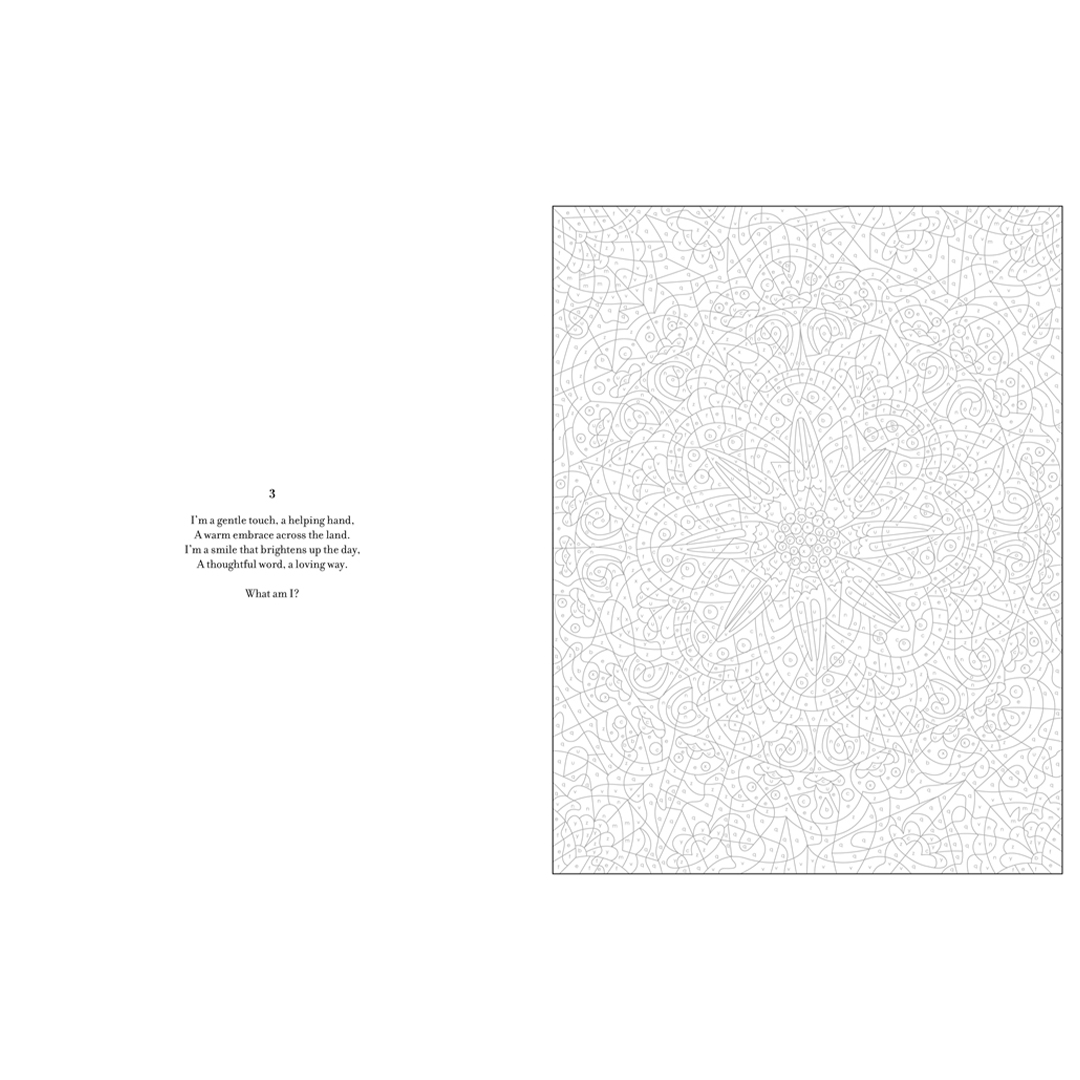 The latest trend in coloring, combining the joy of coloring with the thrill of a surprise! Each of the 30 modern illustrations features a mandala that is revealed as you complete the color-by-numbers design, plus a riddle to ponder as you bring the artwork to life. An engaging escape for coloring enthusiasts of all levels.