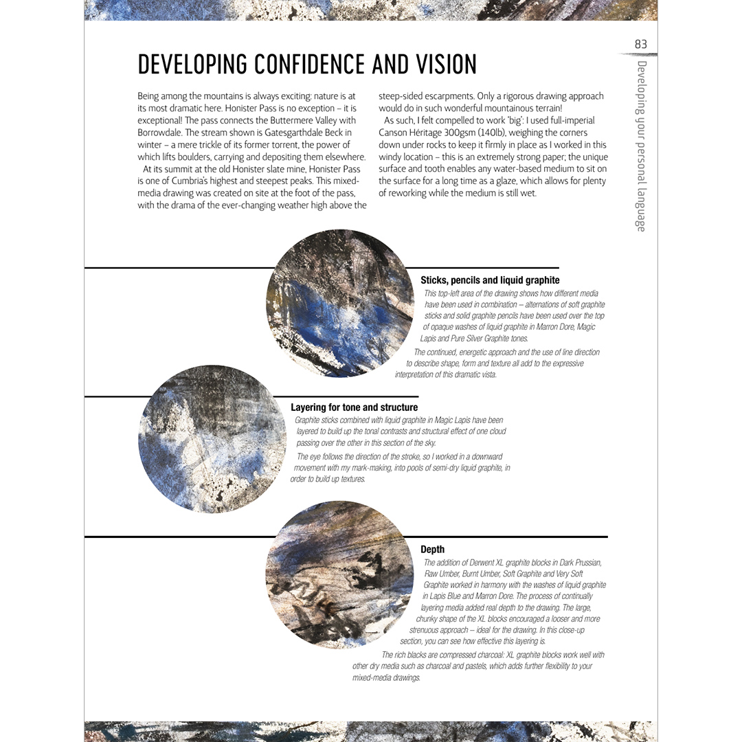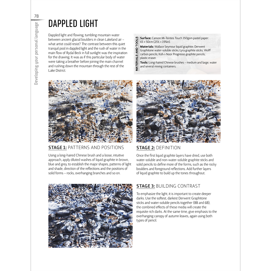 This book is aimed at artists who want to discover new ways of using different drawing materials to create expressive and dramatic landscapes. Artist and author Robert Dutton uses his powerful and free drawing and painting style to capture the mood, energy, and drama of the landscape. He combines materials such as liquid graphite, ink, metallic ink, charcoal, and water-soluble crayons and pastels, and also experiments with collage.