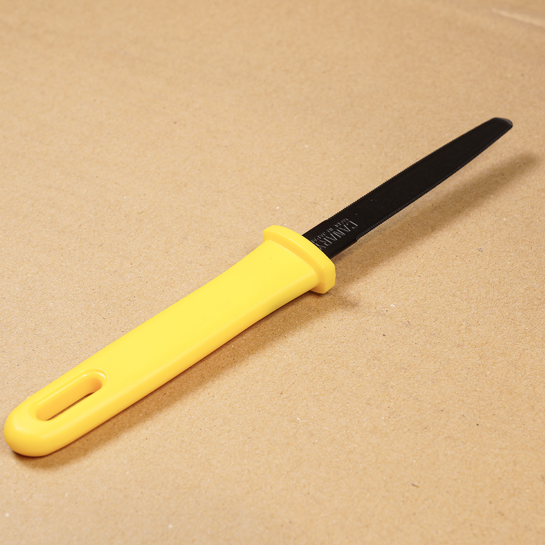 Fine-toothed edge: Prevents the blade from jamming and offers a safer alternative to snap-off knives.