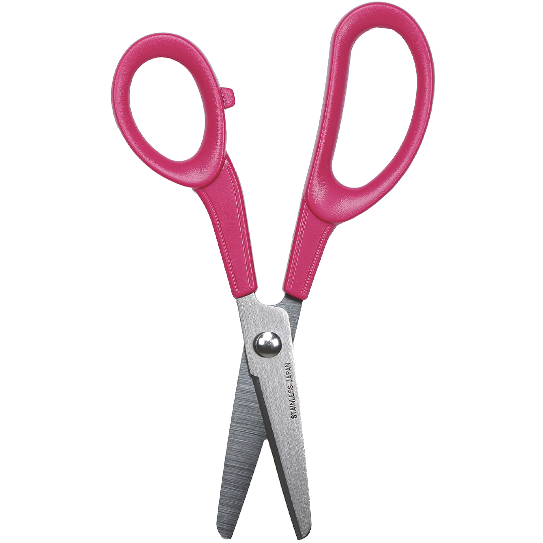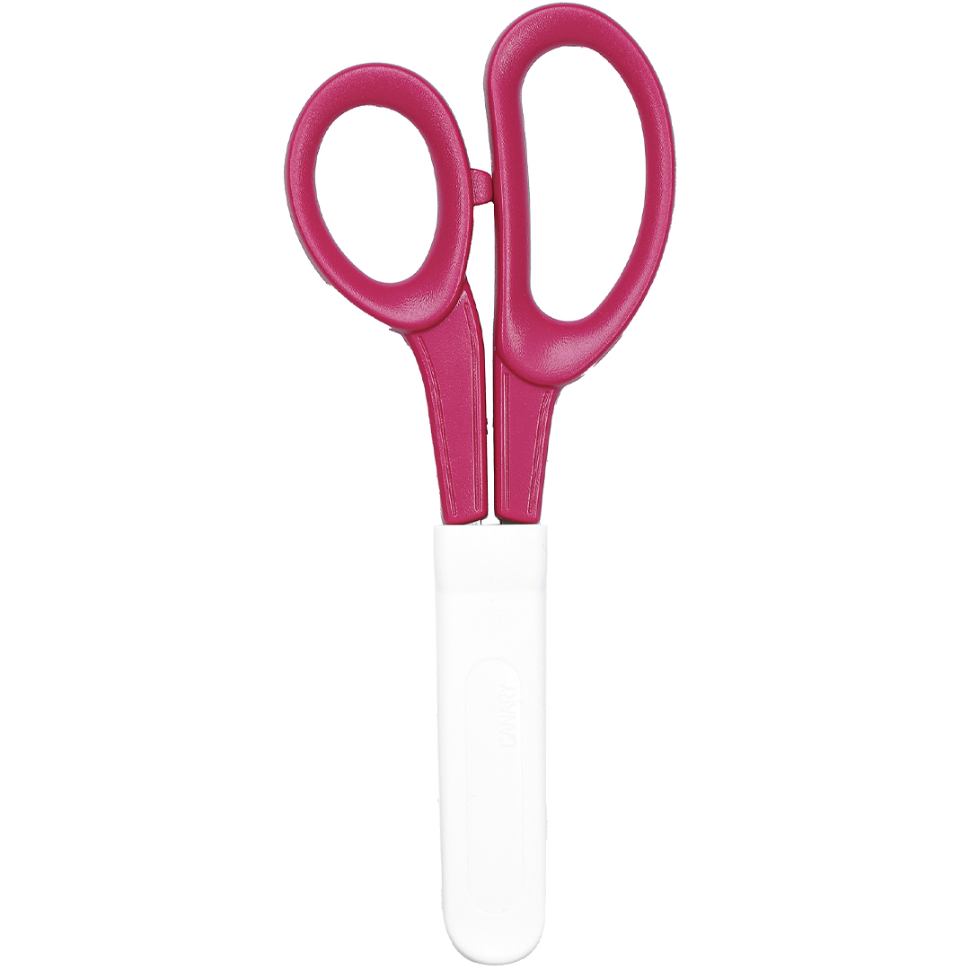 Children’s scissors with five-finger grip, rounded blades, and included safety cap. A safe and reliable choice for children learning to cut.