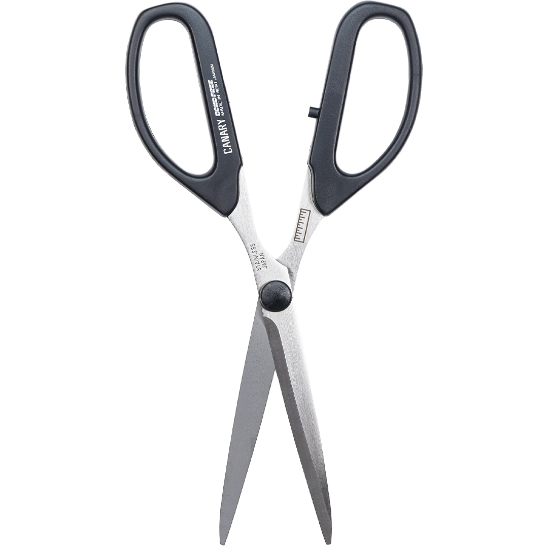 Professional scissors with razor-sharp cutting edge. Easy to handle with long narrow 80 mm blade treated with Canary's bond-free technology so glue won't stick. Features 70 mm ruler marked on the blade.