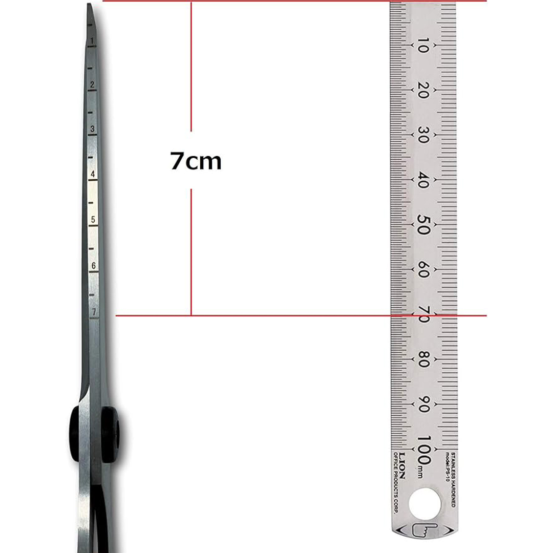 70 mm ruler on blade: These scissors also measure. Cut without a ruler up to the 70 mm markings on the blade and boost work efficiency.