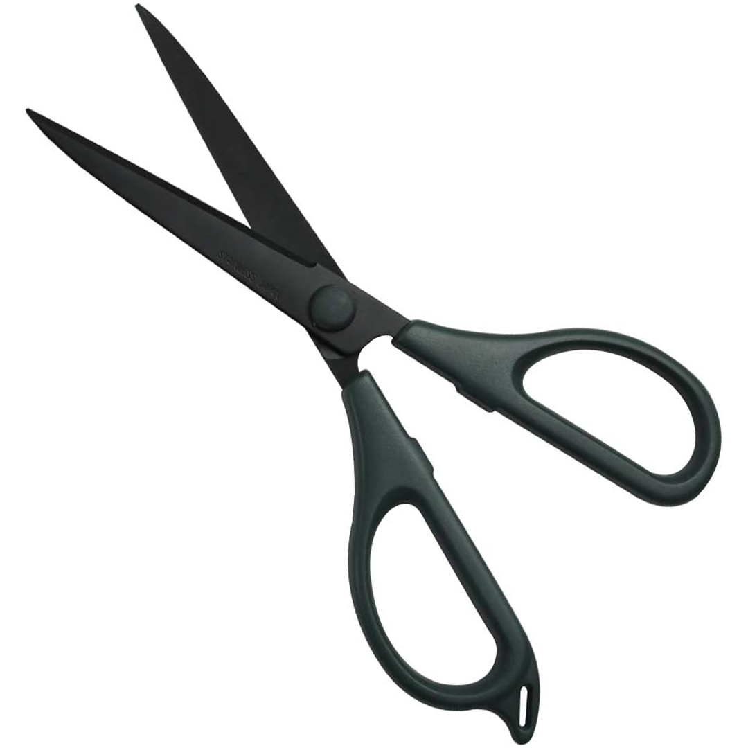 Small handy "do-it-all" scissors with non-stick coated blades so tape and glue won't stick. Stylish black/grey design with powerful wide blade.