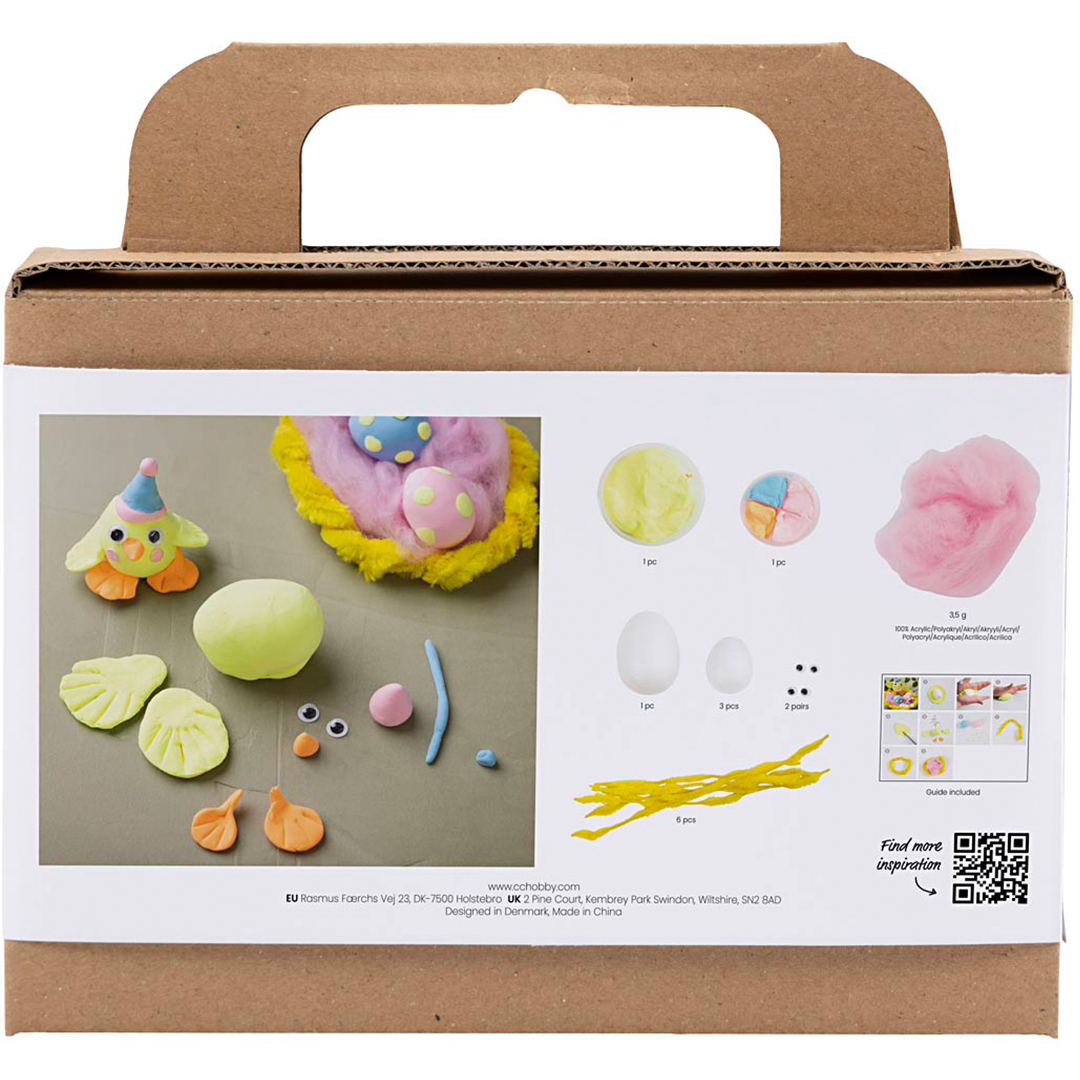 With this kit you and the children can make your own cute little chicken family from Silk Clay. Silk Clay is soft, pliable and easy to shape. The kit contains all the materials and all the instructions you need.