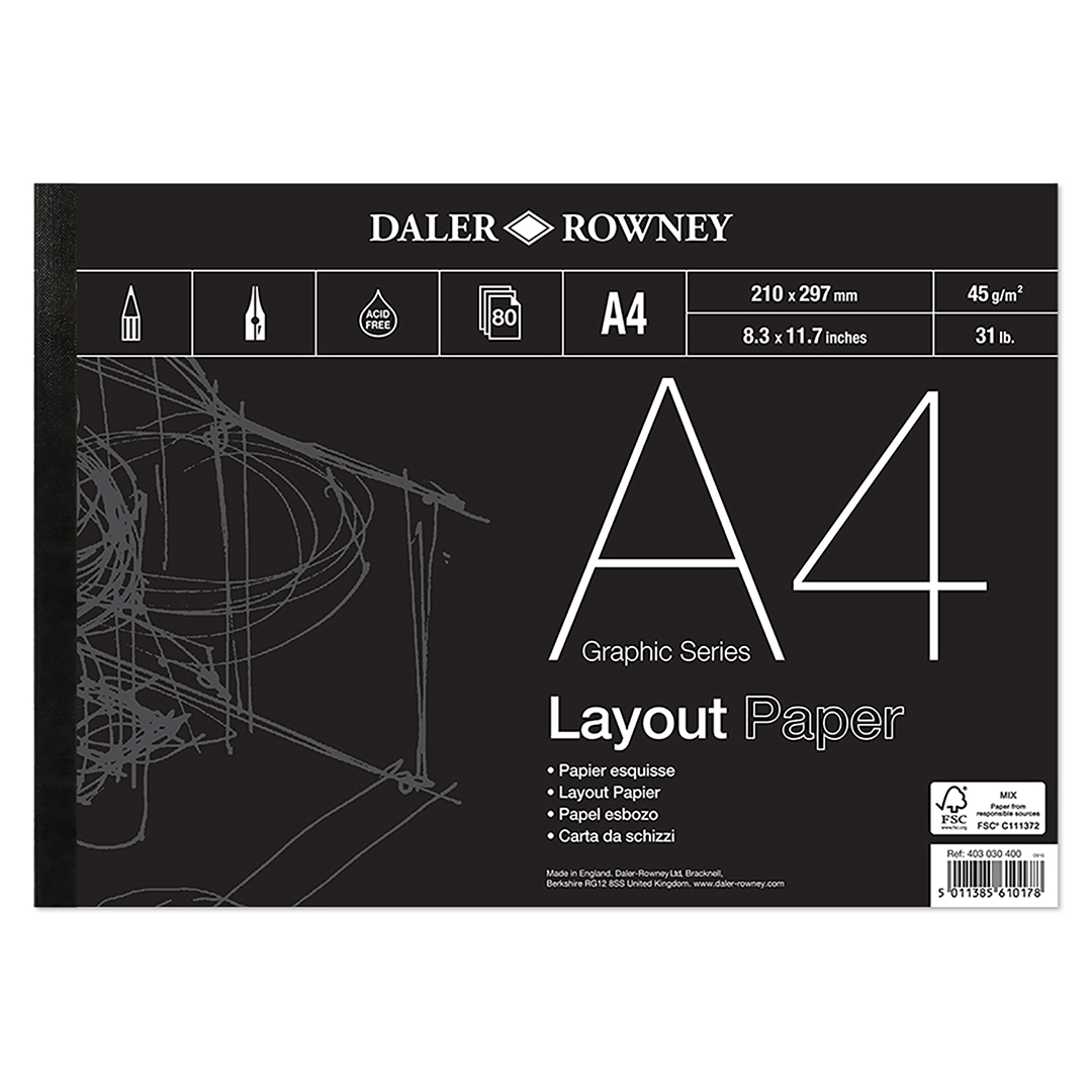 The pad contains 80 sheets and is glued on the short edge for easy handling and a stable working surface, suitable for both students and professional creatives.