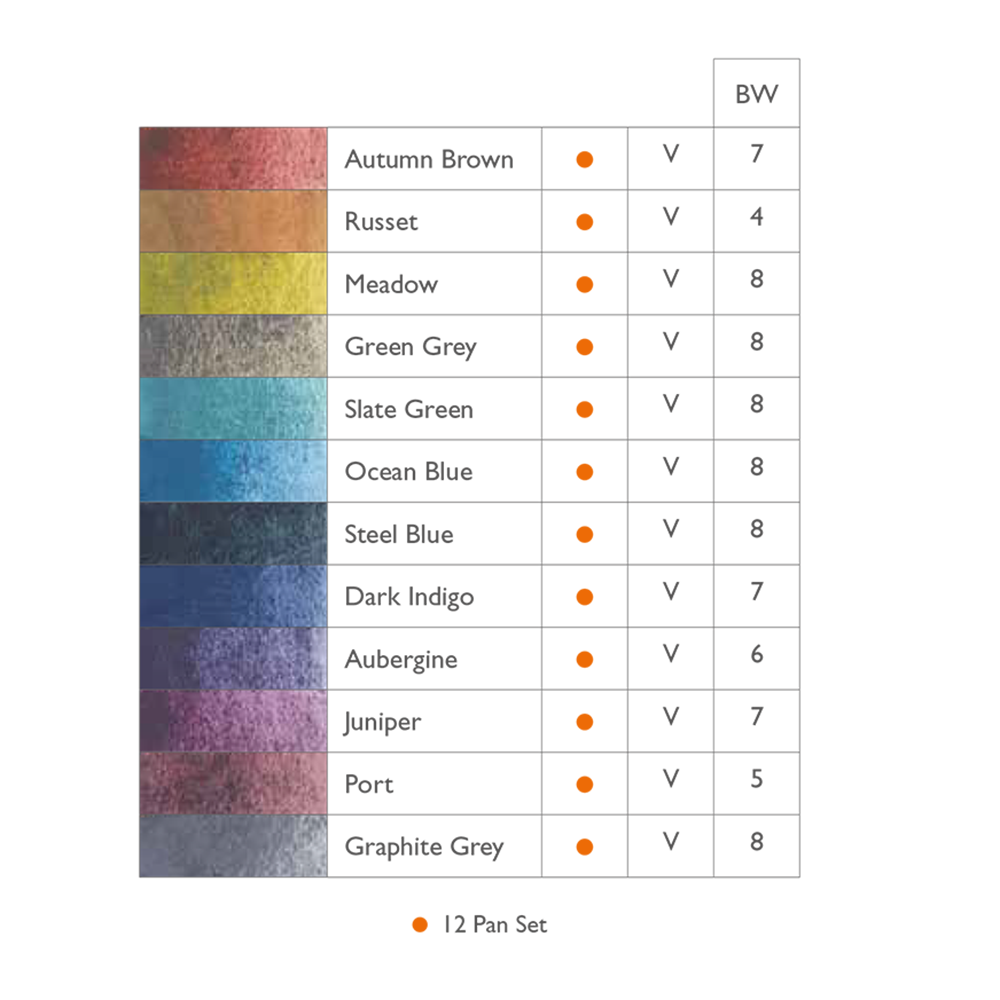 Colours: Port, Juniper, Aubergine, Dark Indigo, Steel Blue, Ocean Blue, Slate Green, Green Grey, Meadow, Russet, Autumn Brown, Graphite Grey