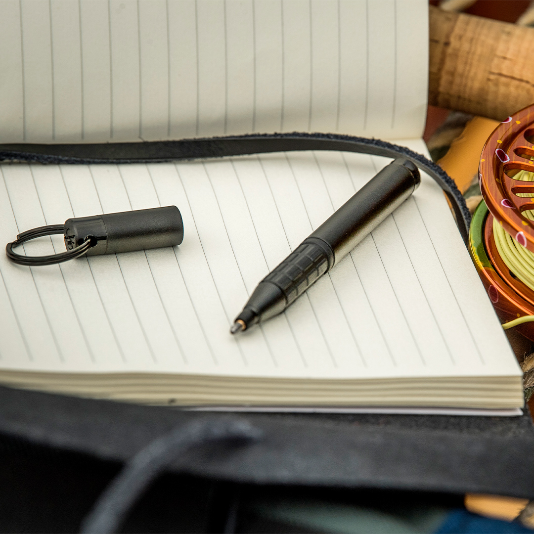 The Fisher Space Pen Trekker is an all-metal ballpoint pen with a rubberised grip. It is refillable with pressurised refills for the Fisher Space Pen. The pen comes with a black medium refill and is supplied in a gift box.