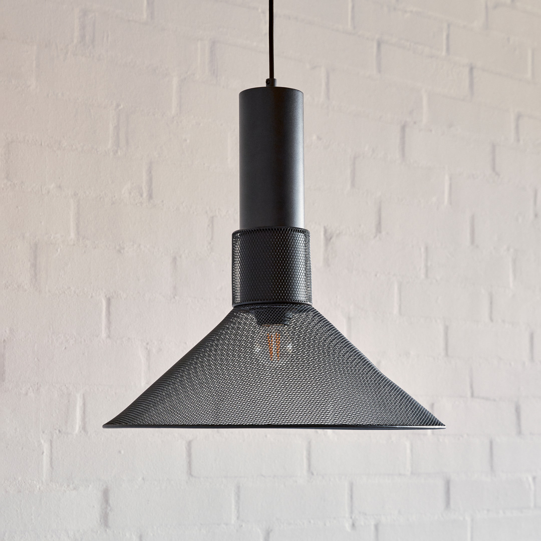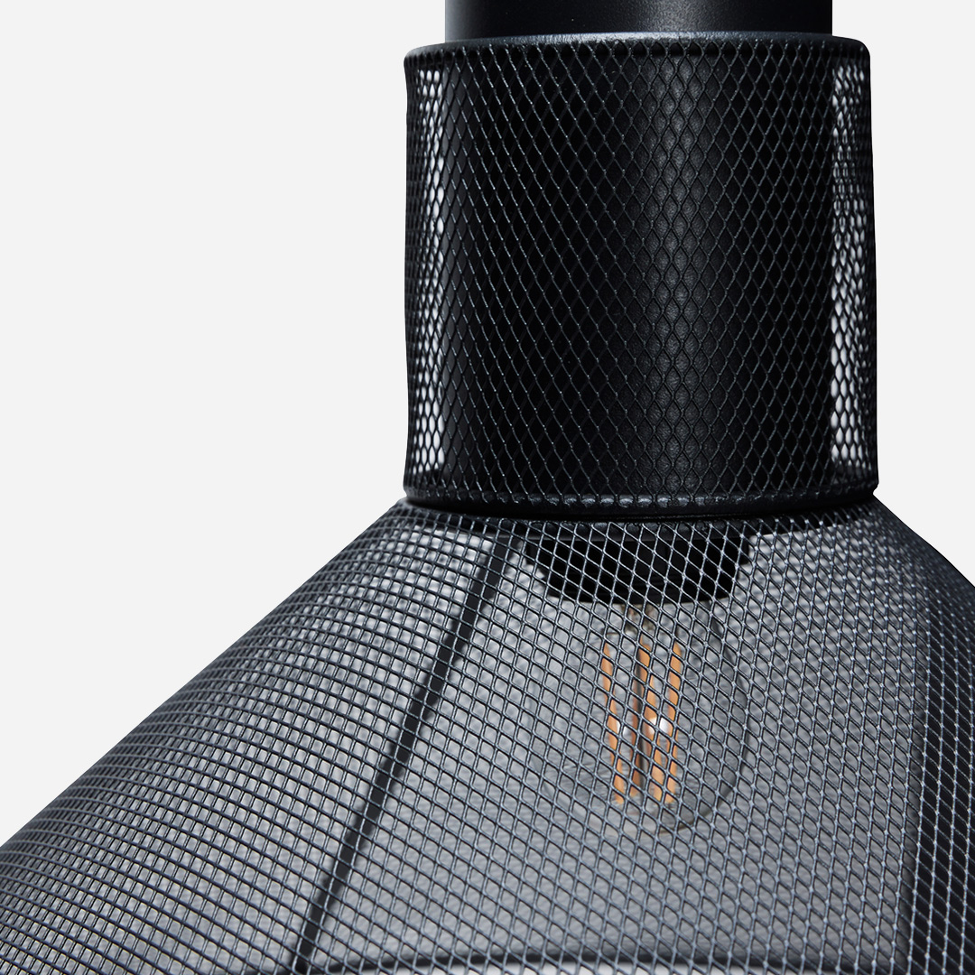 Ray Pendant Black is a striking pendant lamp in black metal mesh that quickly becomes a focal point in the room. When switched on, it creates an intriguing play of light as the mesh pattern casts decorative rays onto walls and ceiling. The graphic look is balanced by a softer light, making Ray a harmonious choice.