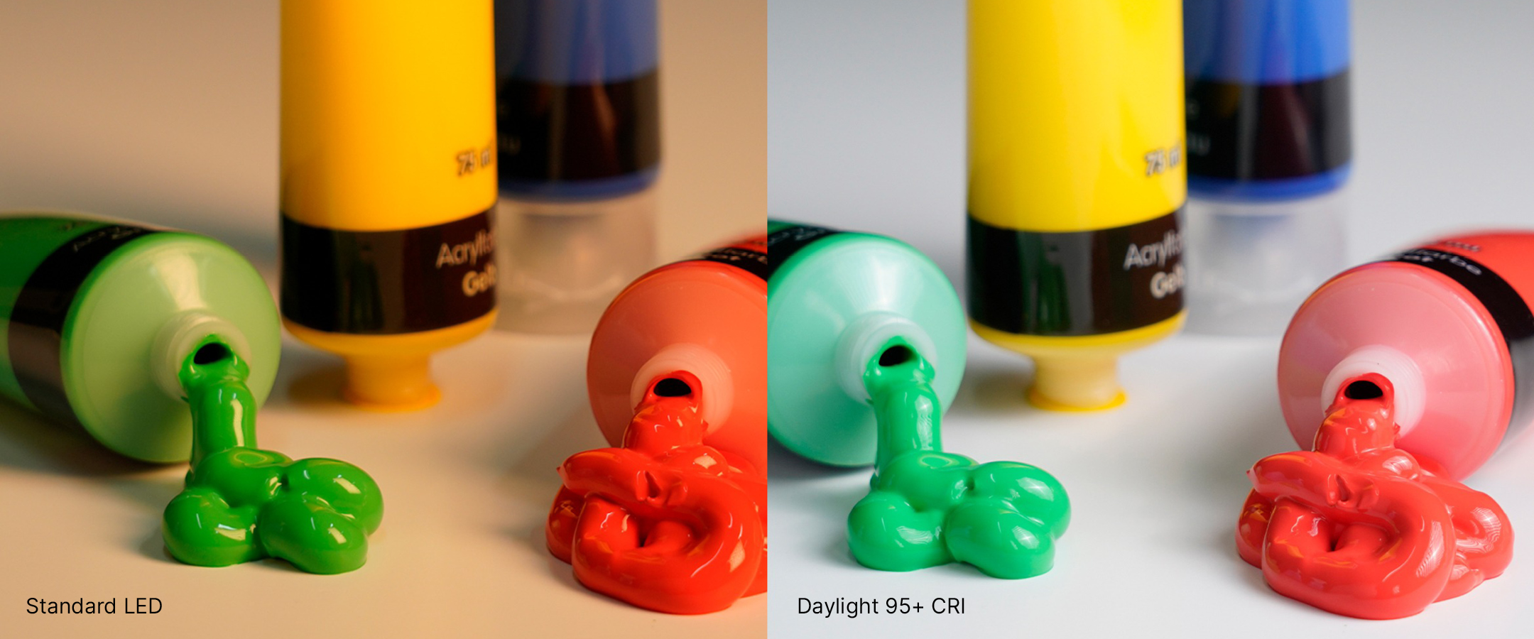 CRI above 90 is regarded as excellent and is commonly used in settings where accurate colour rendering is essential. Professions that often invest in lamps with a CRI above 90 include artists, designers, photographers, tattoo artists, nail technicians and make-up artists.