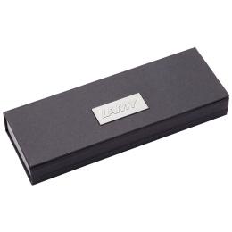 14 carat gold nib, partly platinum-plated. Black high-gloss pen body. Interchangeable grip and screw cap. Solid, spring-loaded clip. Supplied with Lamy T 10 ink cartridge in blue. Can also be used with Lamy Converter Z 27 for use with bottled ink.
