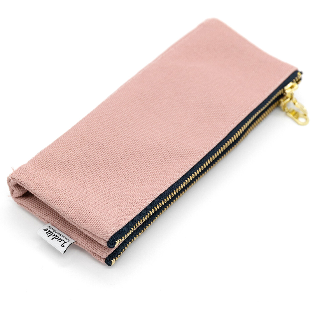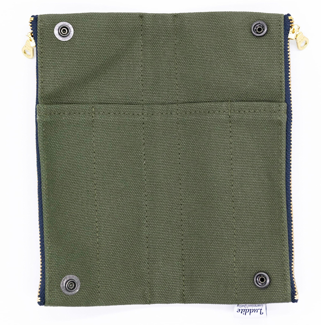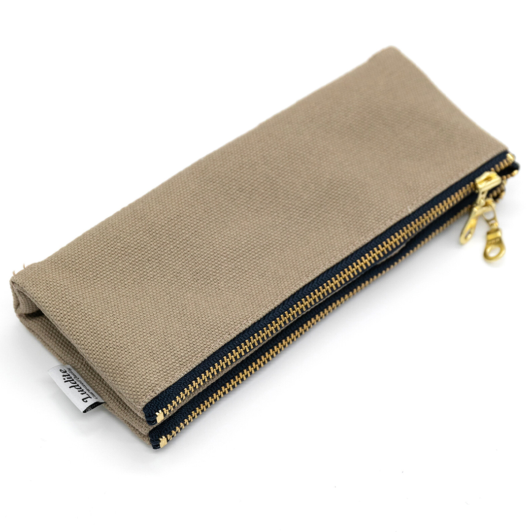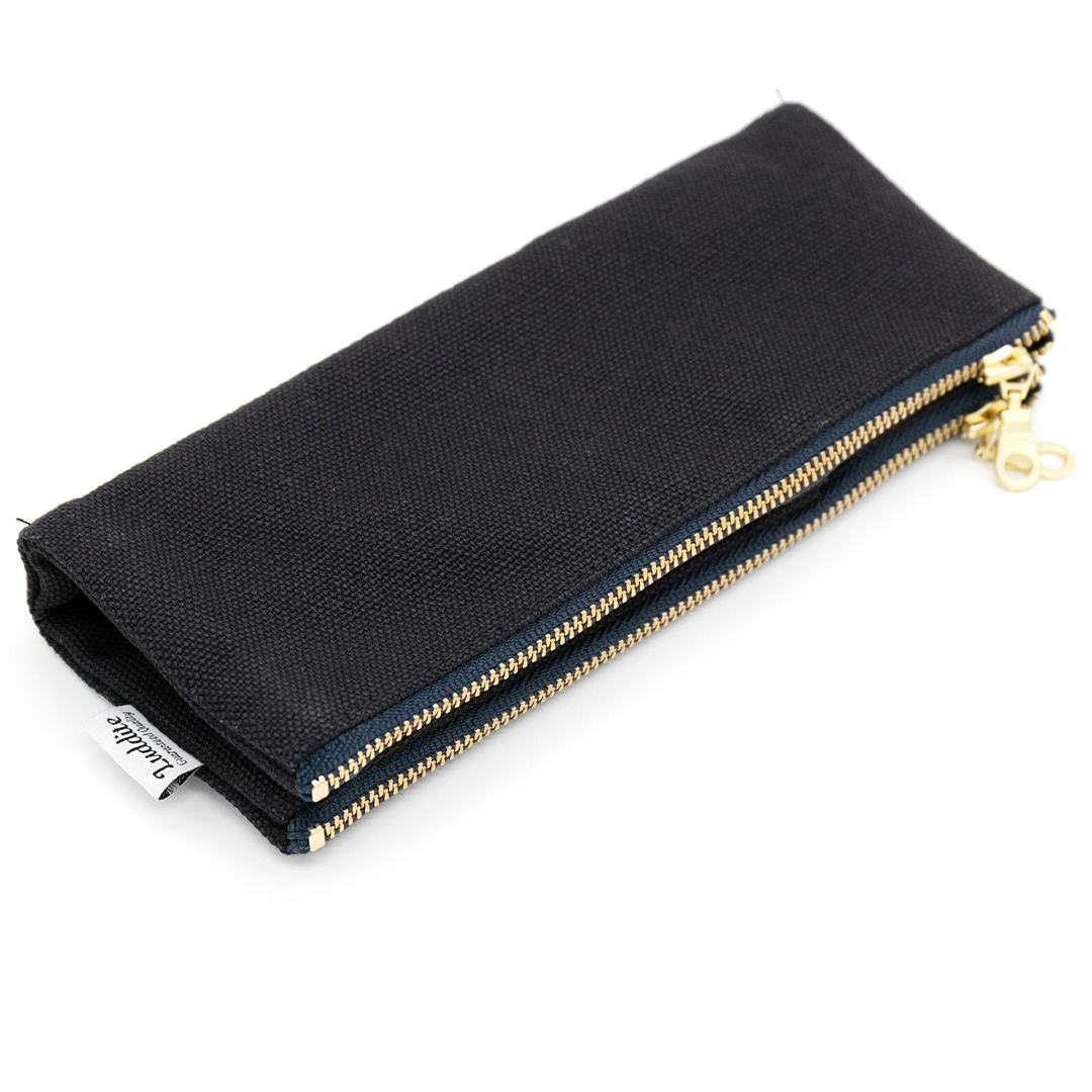 An elegant and practical pen case from the Japanese brand Luddite Co. Made of Kurashiki canvas, a durable and long-lasting material. The case features five individual pen holders and two separate zippered side pockets for smaller items.