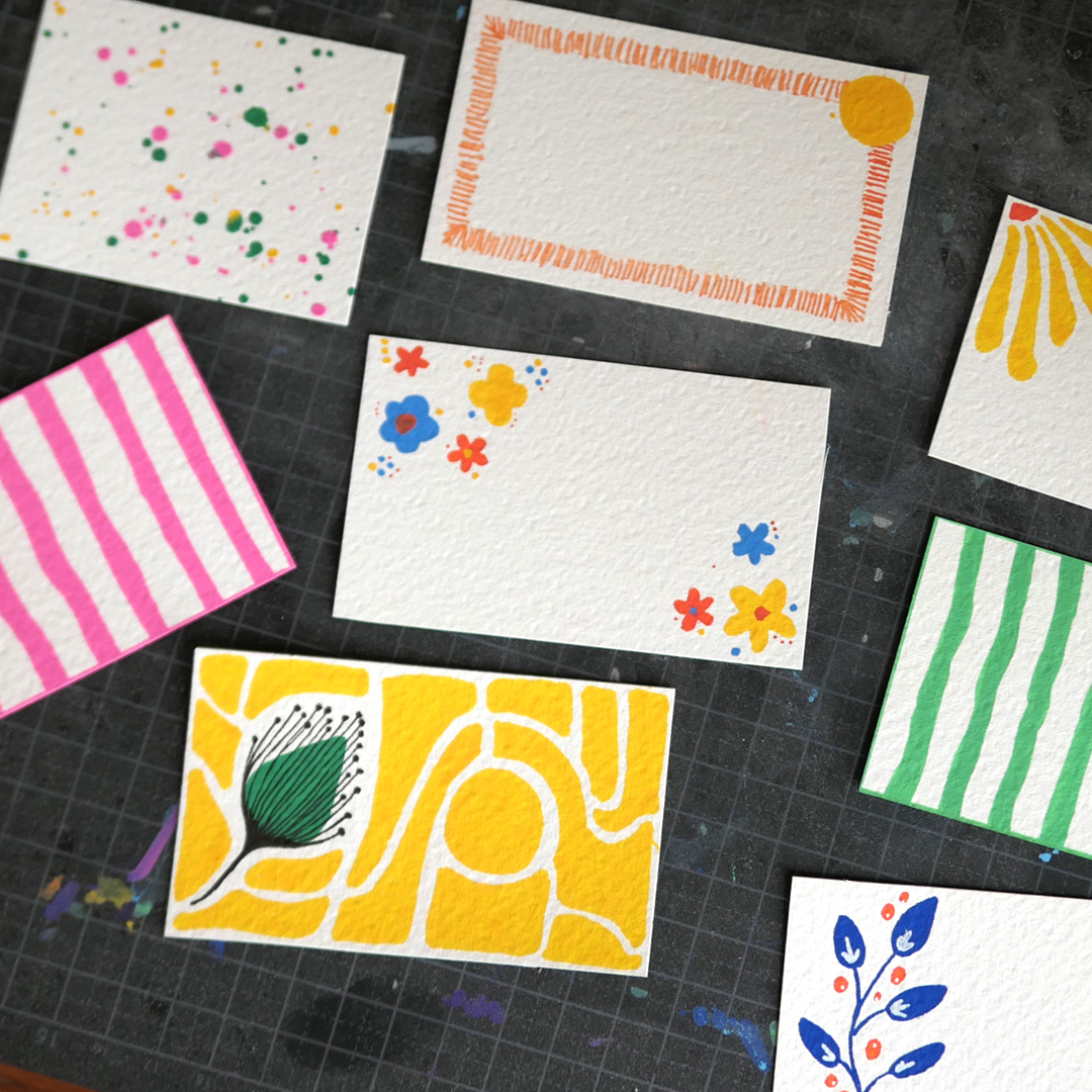 - Frame the card with a marker in a contrasting colour. Be bold. Wavy lines, bubbles or swirls work beautifully and create a hand-drawn, on-trend feel.