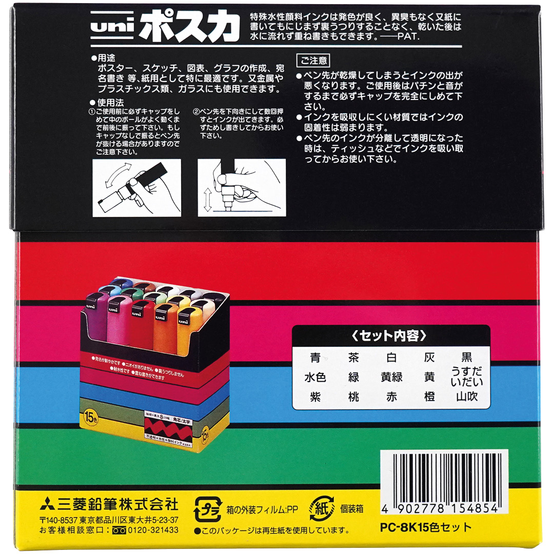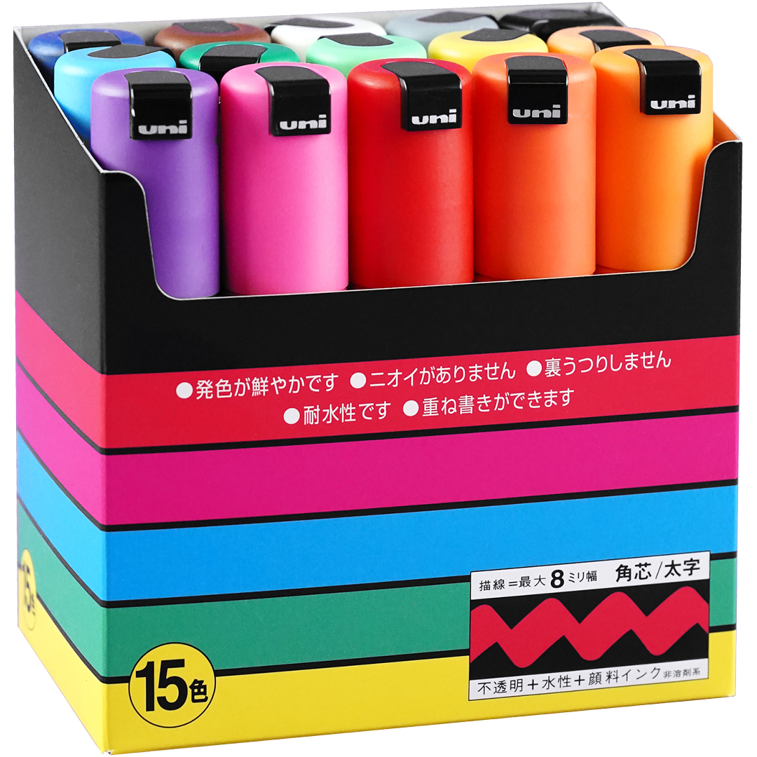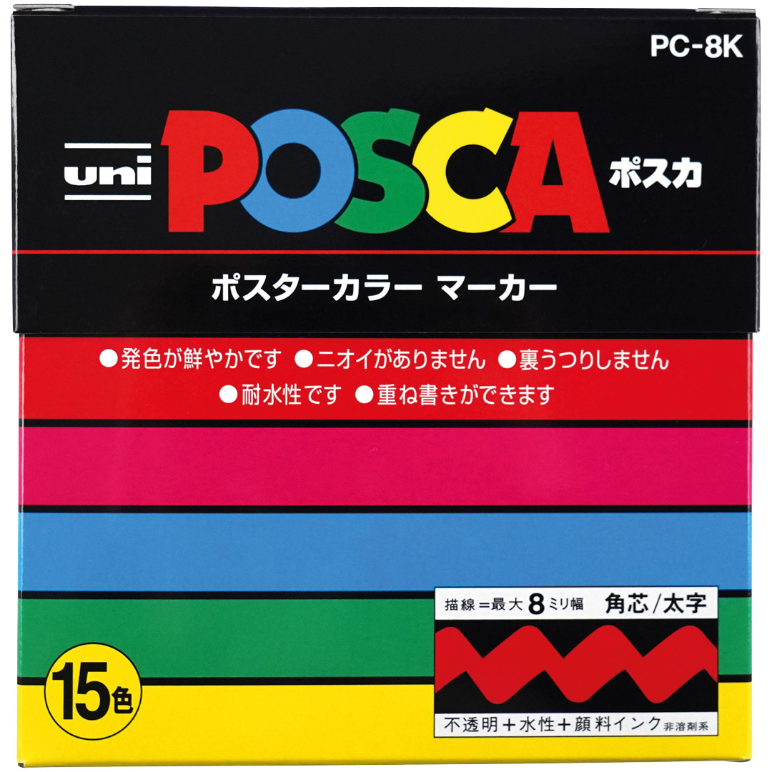 Uni Posca is a water-based opaque paint pen with pigments that adhere to a range of surfaces like paper, cardboard, wood, stone, textile, glass, plastic, and metal. The colour is permanent on many porous substrates and can be removed from smooth surfaces, making experimentation easy without damaging the base. The colour dries quickly, is odourless, and suits both spontaneous craft projects and more advanced artistic works.