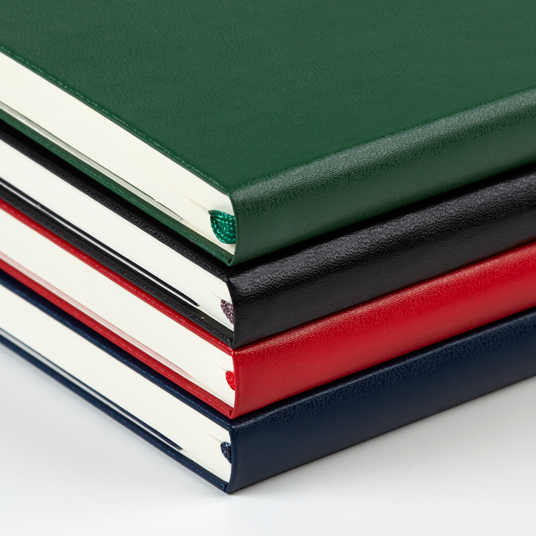 - Rounded corners, elastic band, and matching ribbon bookmark.