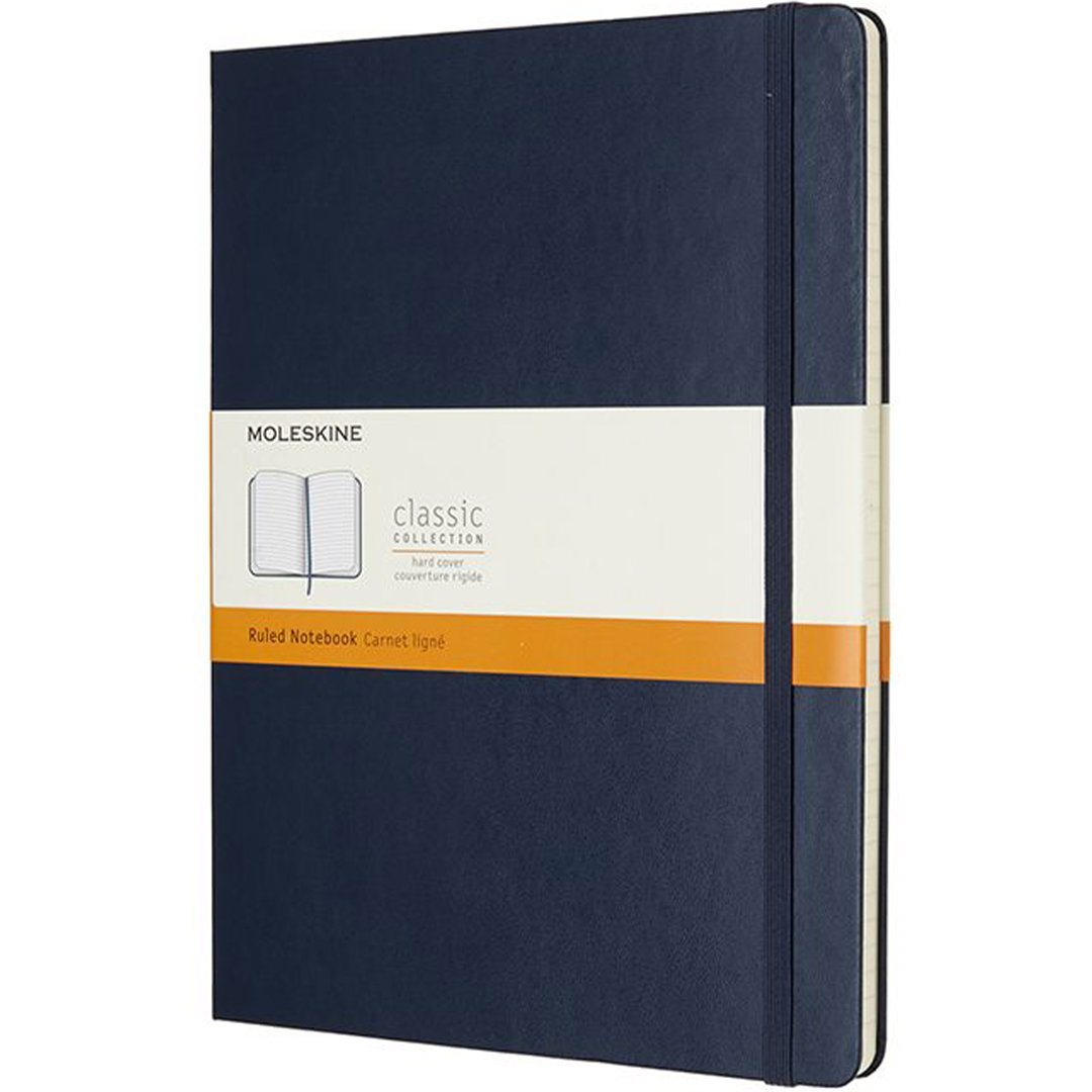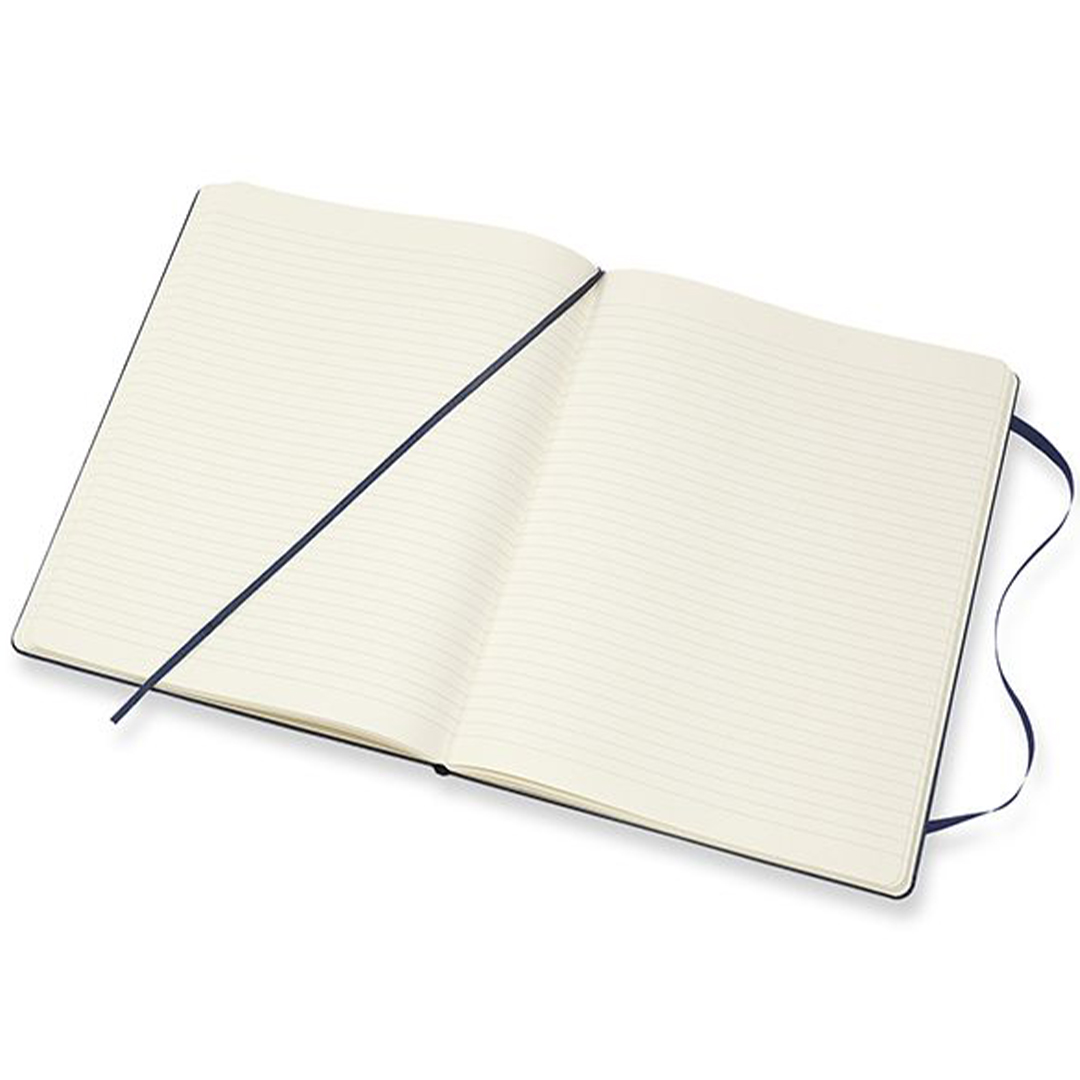 Hard cover notebook in XL size (19 × 25 cm) from Italian brand Moleskine. The notebook contains 192 pages and features an expandable inner pocket and an elastic closure to keep it securely shut when not in use. The ivory-coloured paper is FSC-certified, acid-free, and of premium quality!