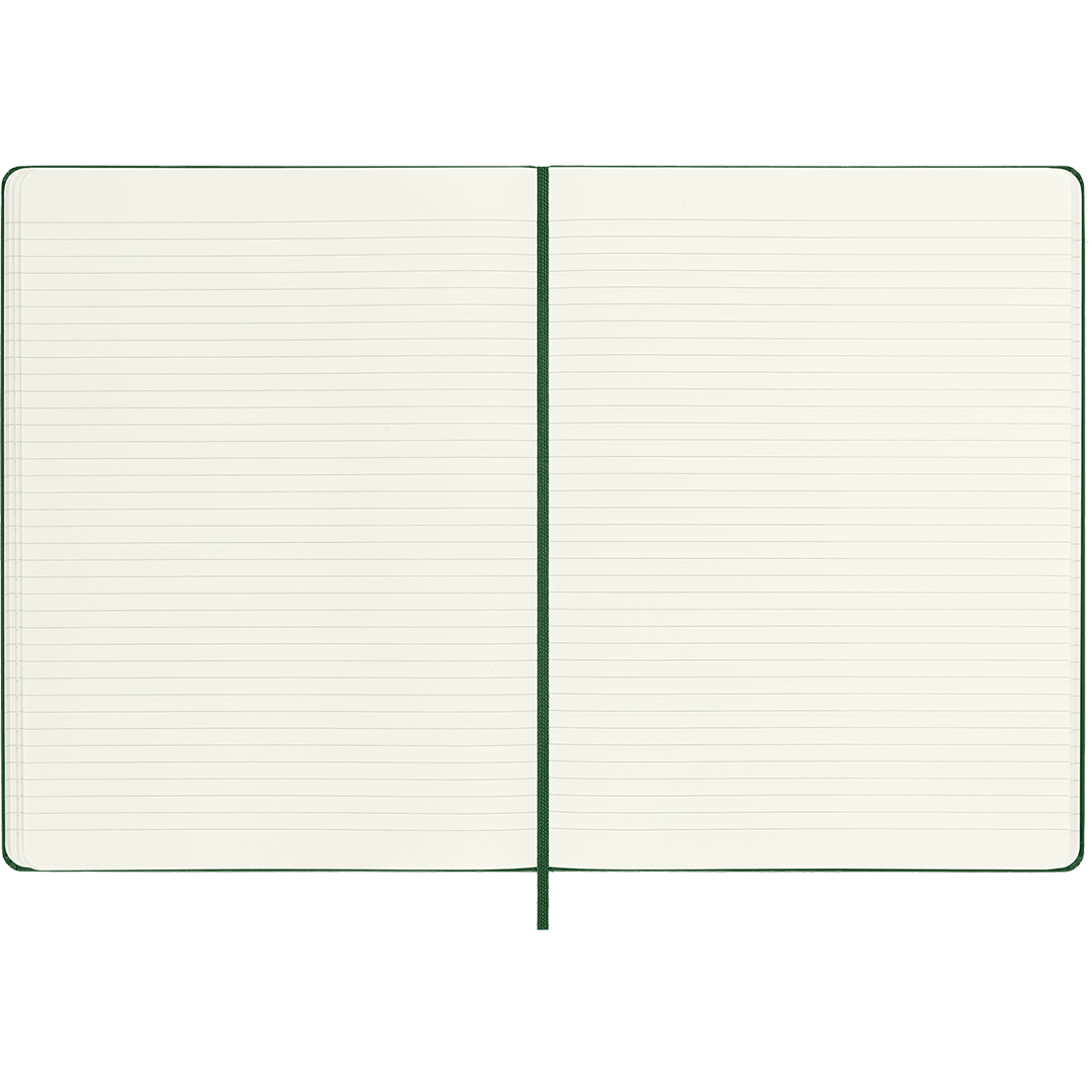Hard cover notebook in XL size (19 × 25 cm) from Italian brand Moleskine. The notebook contains 192 pages and features an expandable inner pocket and an elastic closure to keep it securely shut when not in use. The ivory-coloured paper is FSC-certified, acid-free, and of premium quality!