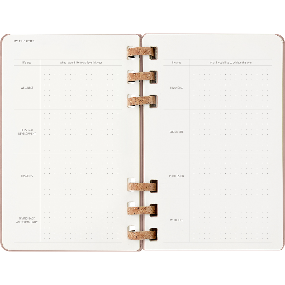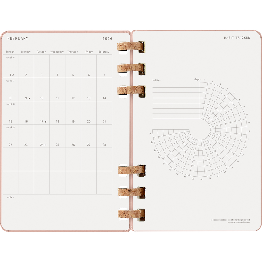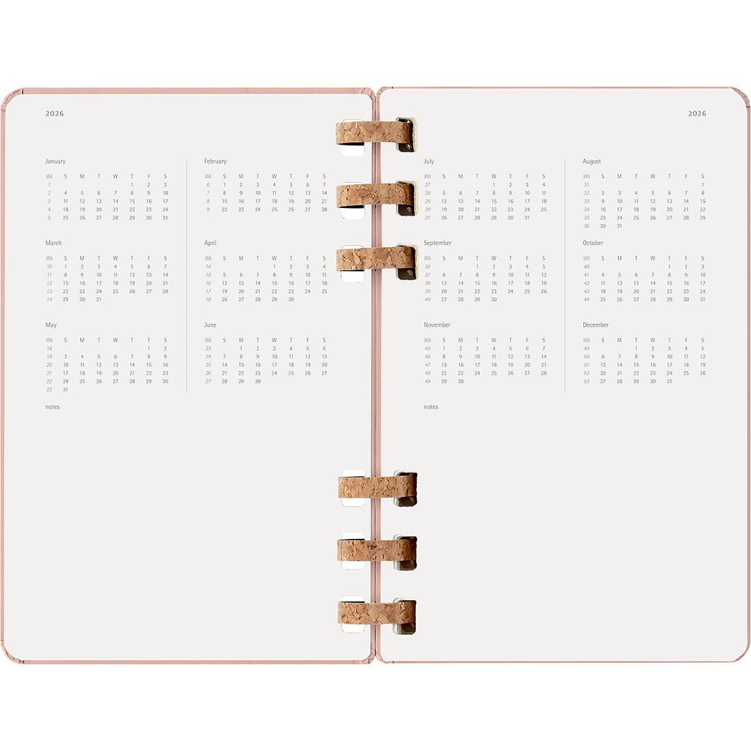 With a spiral spine in trendy cork and made of eco-friendly, high-quality 100g 'Remake' paper from the Italian company 'Favini Paper'. Combining monthly and weekly planning, this calendar provides ample space for writing and planning and is well designed to support student life.