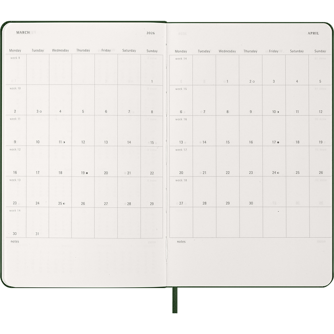 Planner 12M Weekly Notebook 2026 Hardcover Large Myrtle Green