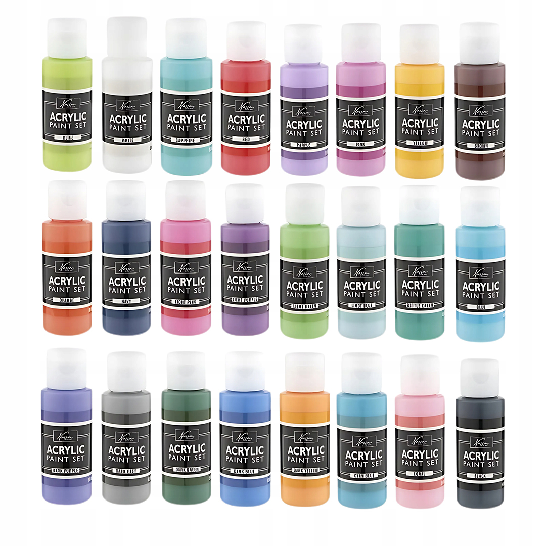 The set includes 24 acrylic paints (24 x 59 ml) and 12 brushes. With a wide spectrum of colours and brushes in various sizes, unlimited creative possibilities are at your fingertips.