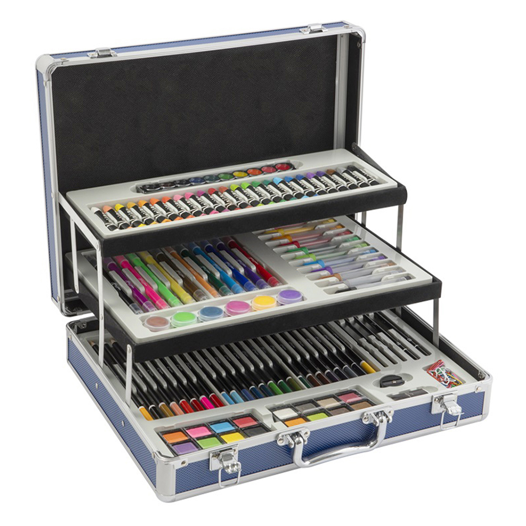 The practical and organised design with specific compartments ensures that all accessories are stored neatly and easily accessible, making it simple to take the set on the go or to a creative gathering.
