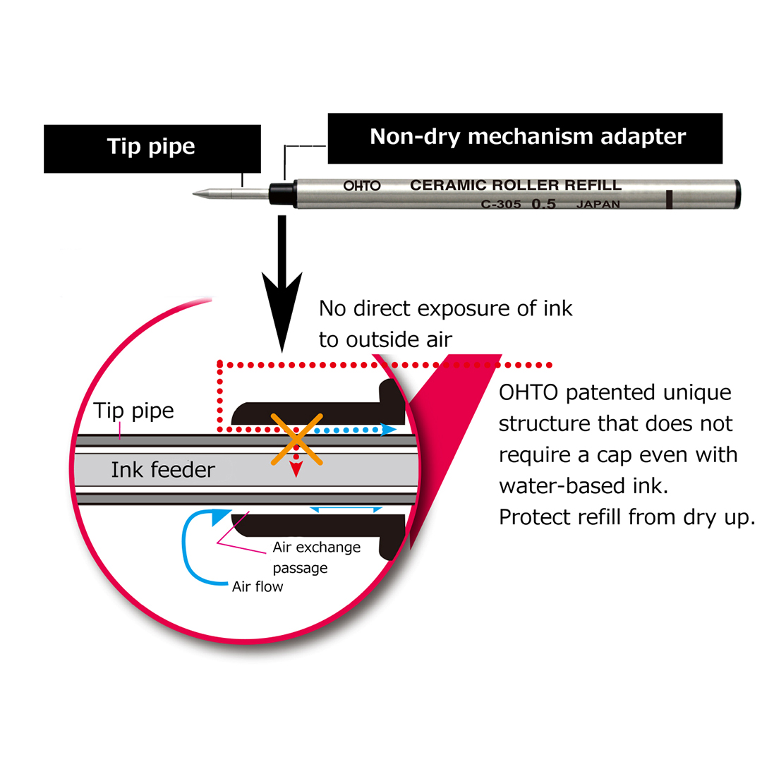 The patented “Non-dry” technology prevents the tip from drying out by protecting the ink feed from direct contact with air, eliminating the risk of vacuum and ink splatter. This ensures your pen is always ready to write without smudging.