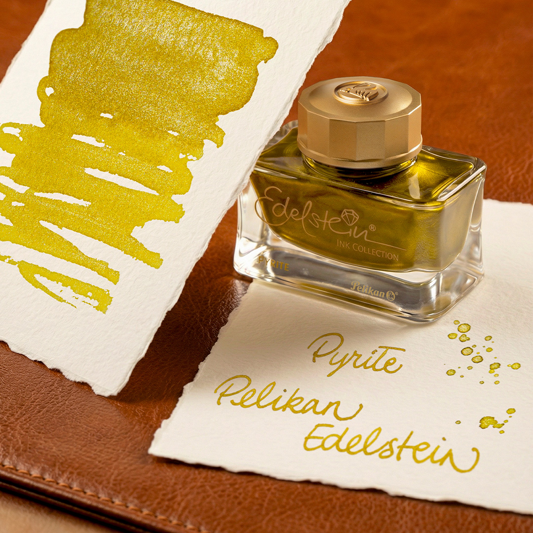 The Edelstein Ink of the Year 2026 Pyrite introduces a soft, light gold tone enriched with shimmering particles, bringing a true golden hue to the Edelstein assortment. Ideal for calligraphy, journaling, and creative lettering, this luminous ink enhances writing with visual elegance and emotional depth.