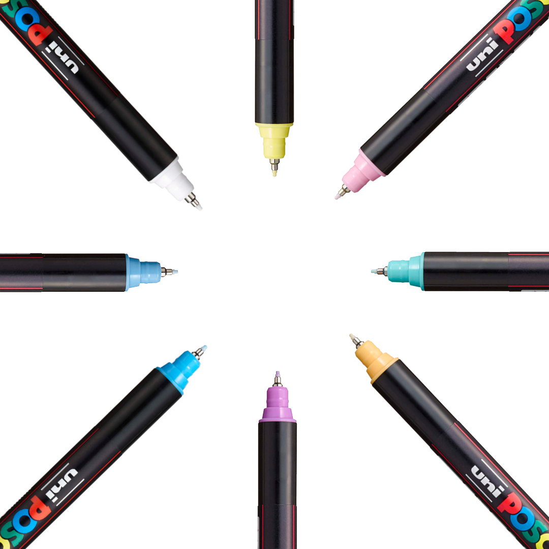 Posca is an iconic and versatile acrylic marker, loved by artists, hobbyists, and creative makers around the world. The pens are filled with water-based, fully opaque paint that brings your ideas to life – even on dark or transparent surfaces.