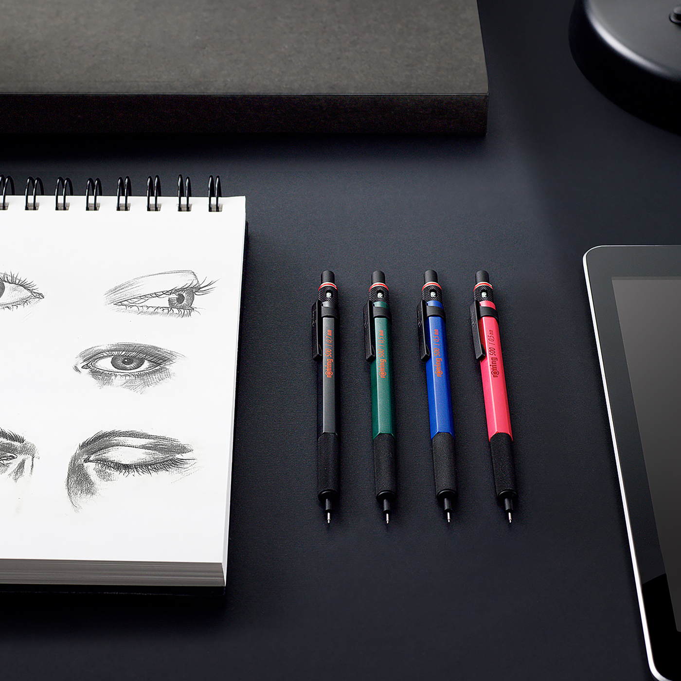 Hexagonal barrel and fixed lead guidance sleeve. Lead hardness grade indicator and eraser in the top.
