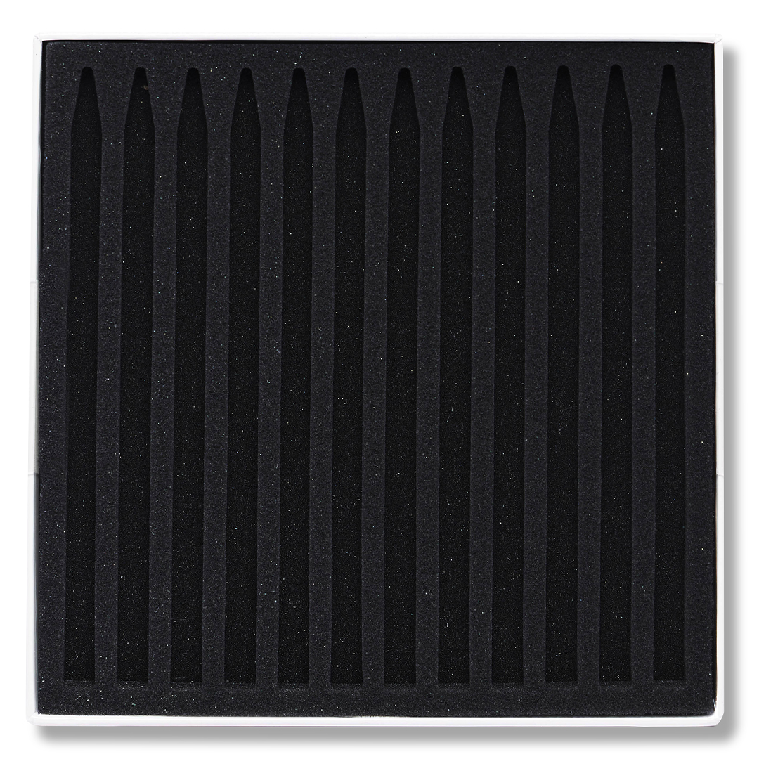 Without a wooden casing, they consist entirely of pure pigment throughout, maximising the amount of usable colour. They are highly pigmented, offering exceptional colour richness and vibrancy even with light pressure. Thanks to their semi-soft consistency that combines firmness for precise control with creamy softness for effective blending – they are ideal for both fine details and dynamic strokes. With low dust formation, they provide a cleaner application compared to conventional soft pastels. They also stand out with superior lightfastness, where premium pigments maintain intense lustre and resist fading over time.