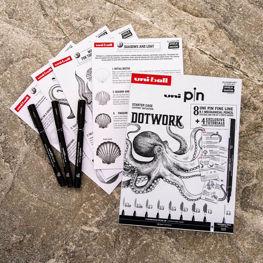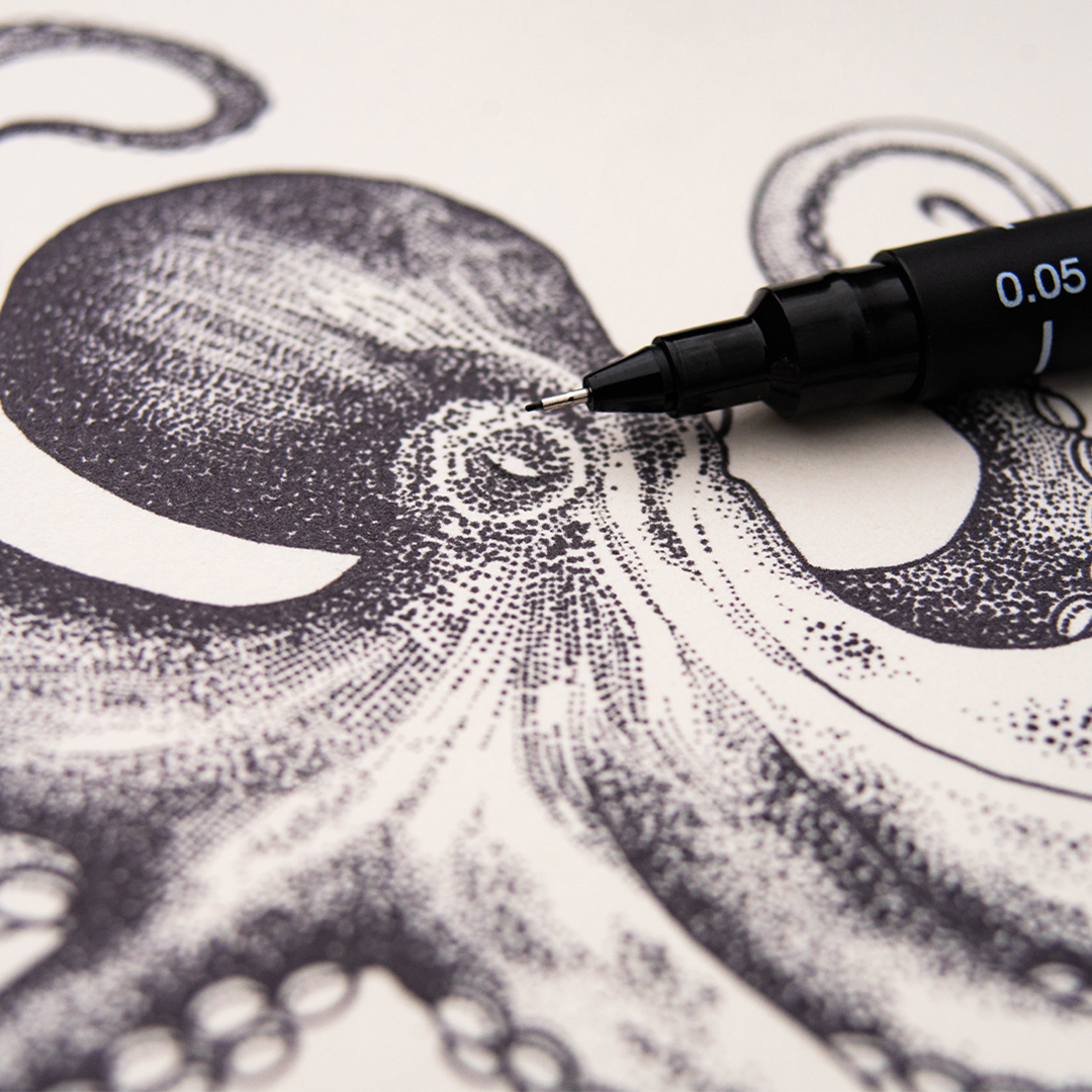 This set is specially designed to offer precision and control, resulting in realistic illustrations with impressive shadows and depth. It includes eight fineliners in various nib sizes and a 0.5 mm mechanical pencil. The set also contains inspiring and educational material in the form of four instruction sheets and a booklet that helps both beginners and more advanced artists develop their skills and create unique dotwork pieces.