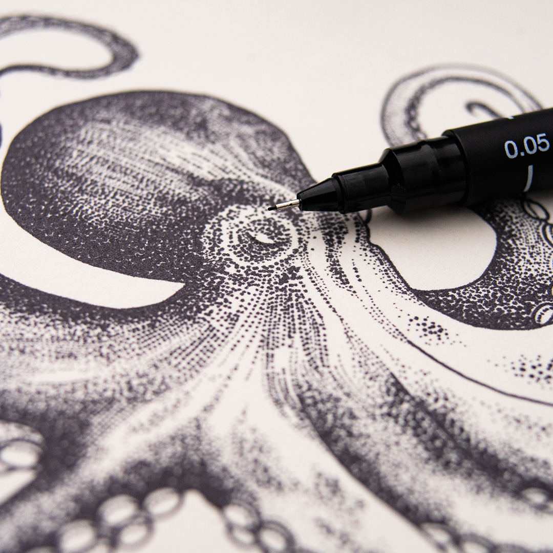 Uni Pin Fine Line uses pigment-based ink that is water- and light-resistant, ensuring that your artwork maintains its quality over time. Its high-quality ink also allows use alongside watercolours and alcohol-based markers without smudging the lines.